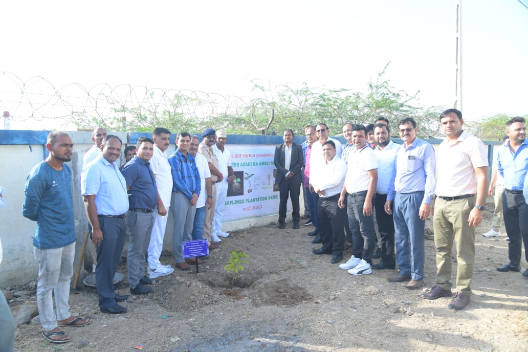 As part of Plantation Drive celebrating Azadi Ka Amrit Mahotsav and FinMinIconicWeek, Officers of CGST, Kutch (Gandhidham) Commissionerate, Police Officers from Police Headquarters, Shinay, Gandhidham, Office Bearers and members of the Gandhidham Chamber of Commerce and Industry, Kandla Timber Association and Gandhidham Branch of WIRC of ICAI planted saplings at Police Line, Shinay on 07.06.2022.